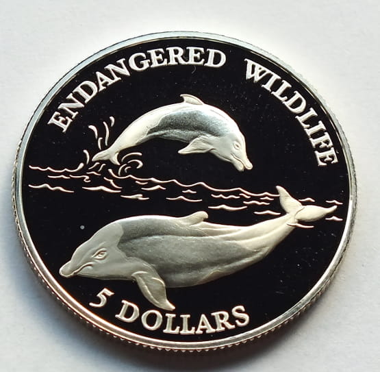 5 dolarów Zagrożone gatunki - Delfiny NIUE 1992