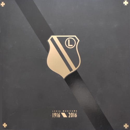Legia Warszawa 1916 - 2016 Blok 2016 r. - okolicznościowy folder wydany z okazji 100-lecia klubu piłkarskiego Legia Warszawa. Folder zawiera bloczek ze znaczkiem, kopertę FDC ze znaczkiem ze stemple okolicznościowym oraz kartę pocztową. Wszystkie walory znajdują się w specjalnych kieszonkach foliowych przyklejonych do stron folderu. Stan zachowania nowy